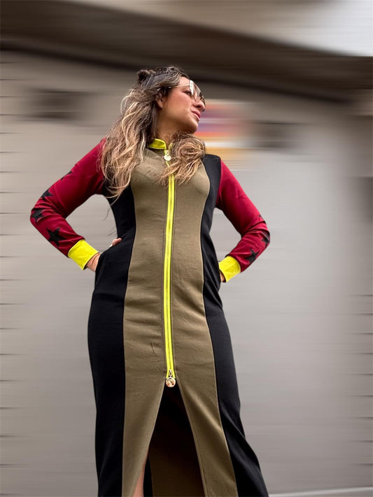 Vestido INDOMABLE verde cacería / burdeos