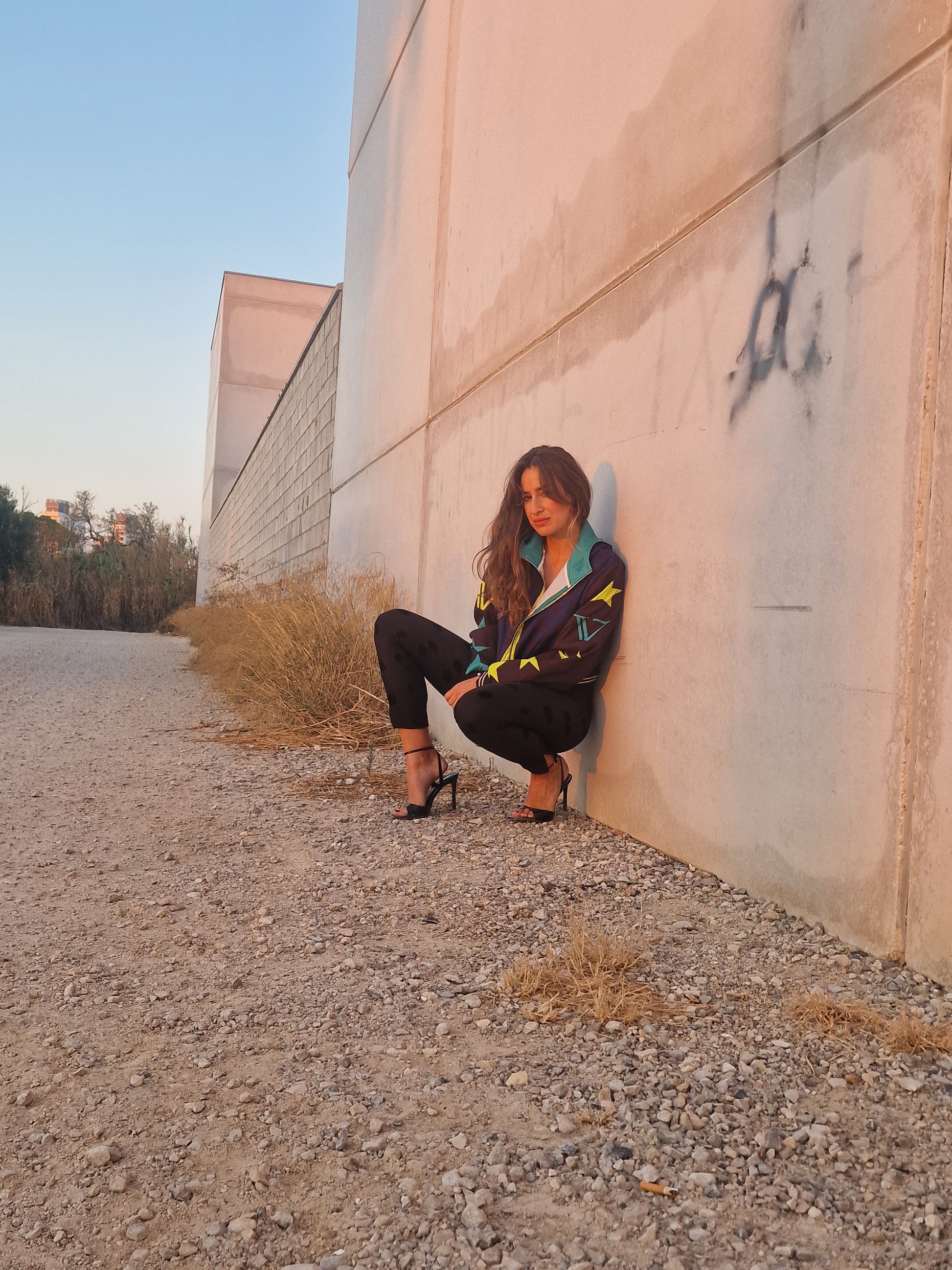 Con un estilo y colorido muy VERÓNICA DE LA VEGA, con mangas asimétricas en diseño jugando con colores.